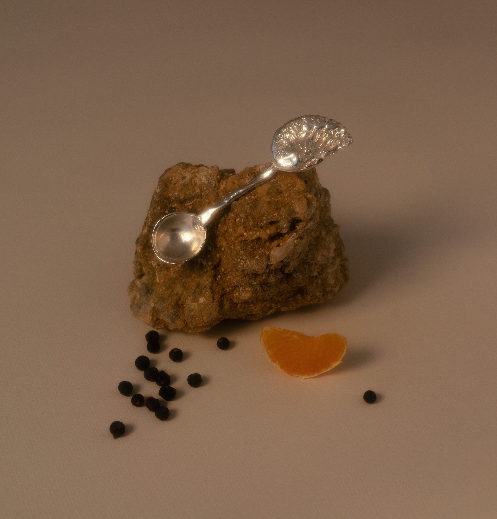 Esta cuchara remite al mundo de los sueños y la fantasía, del subconsciente y de lo desconocido, y está pensada para celebrar lo cotidiano. Cada vez que se utiliza, se produce un diálogo íntimo y silencioso entre la materia y el cuerpo, entre el objeto y el gesto cotidiano.