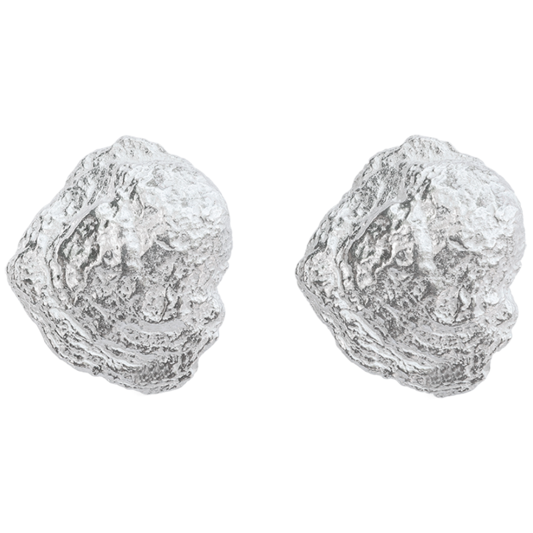 Pendientes hechos a mano de plata reciclada, voluminosos y elegantes con texturas orgánicas e irregulares.
